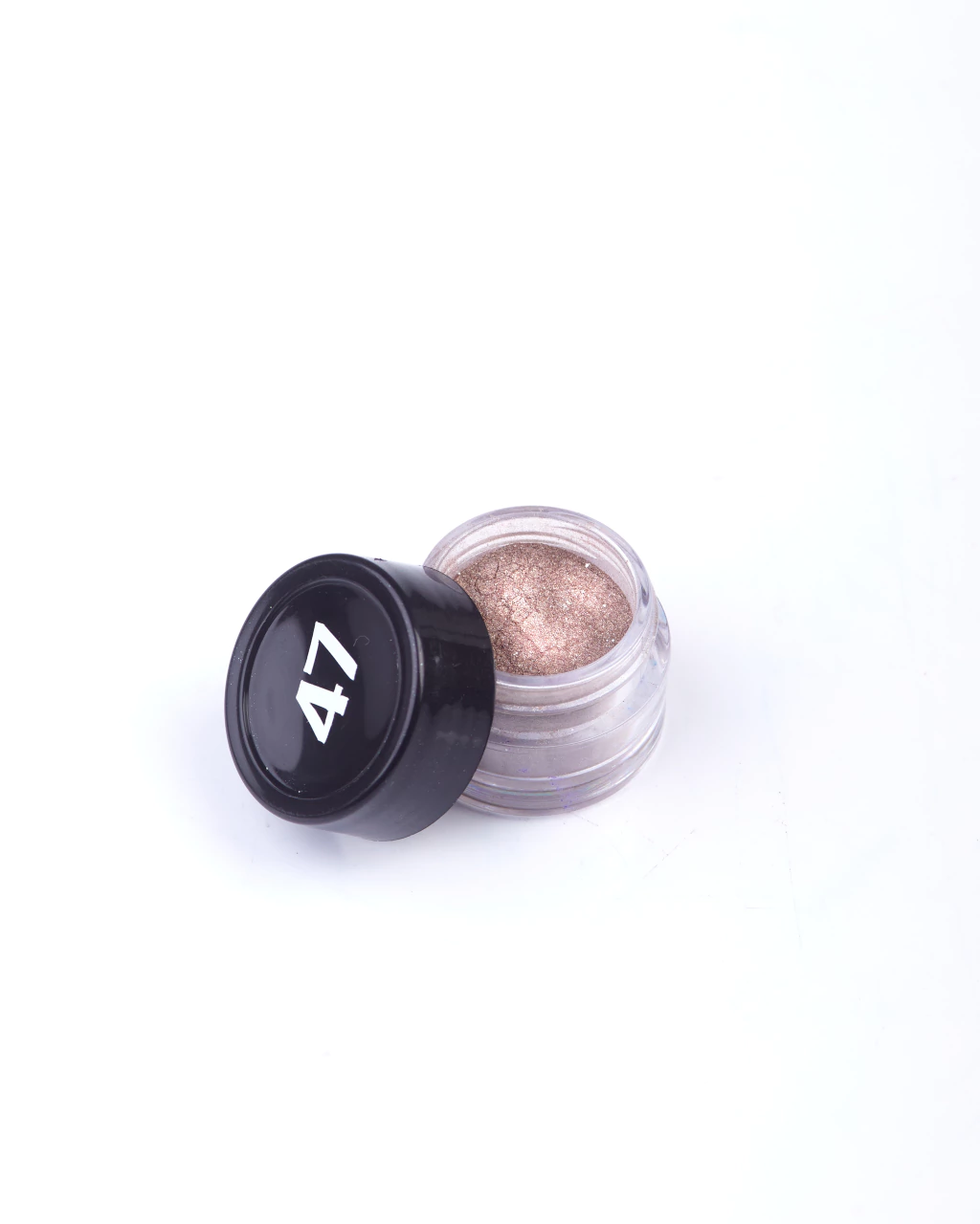 Pigmento puro con tonalidad beige fría, acabado metálico de textura liviana.